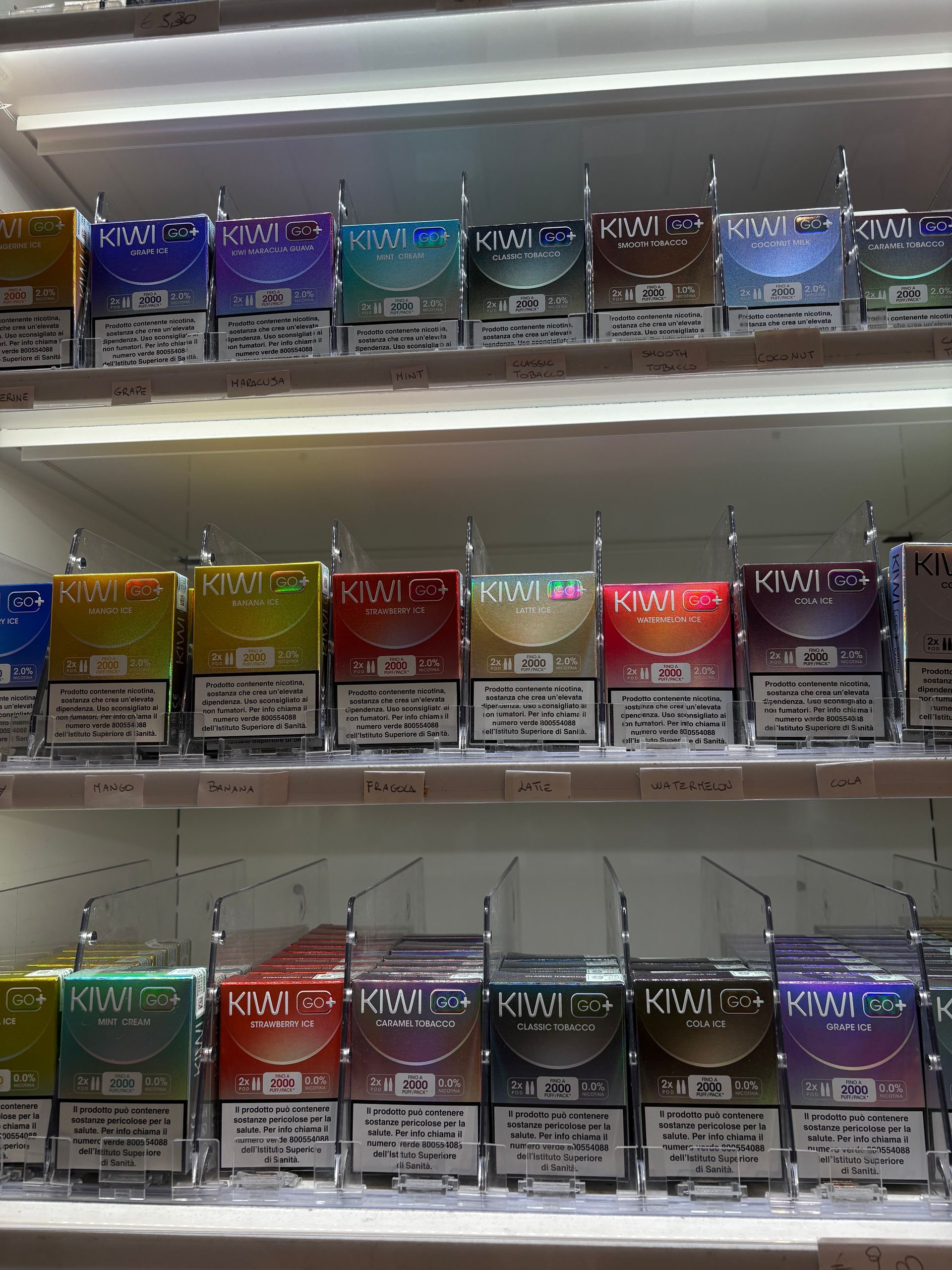Kiwi go+: fino a 1000 puff, per Pod con Coil in ceramica e serbatoio trasparente per controllare il livello del liquido. Kiwi go+ ti da la possibilità di ricaricare il dispositivo e poter variare il gusto data la vasta gamma di pod che possediamo. Il suo prezzo è di 9,50€, la prima volta, acquistando la sigaretta con 1000 tiri gia presenti, il prezzo dei pod sarà di 9,00€ con 2000 tiri.